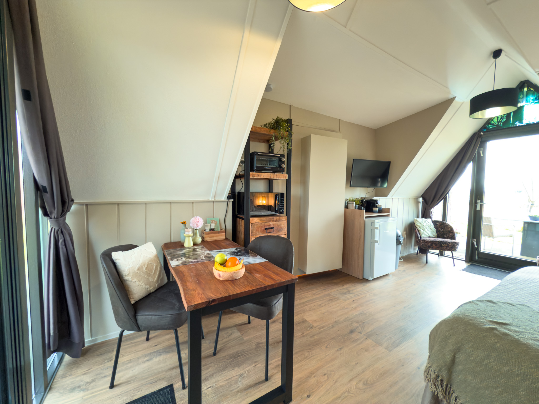 Buiten heb je je eigen terras met tuinmeubilair tot je beschikking. De Hotelhuisjes zijn ontworpen voor 2 volwassenen. Het bijplaatsen van een kinderbed is mogelijk. Een extra eenpersoonsbed kan wel maar is erg krap.